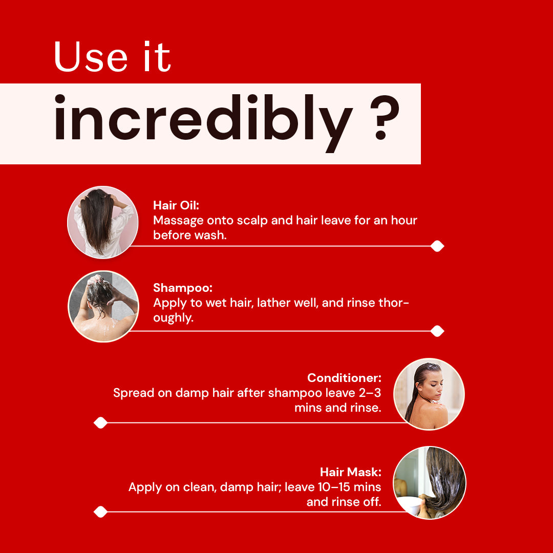 Use the atulya hibiscus & black seed hair mask 1–2 times a week for healthy, nourished, and smooth hair.