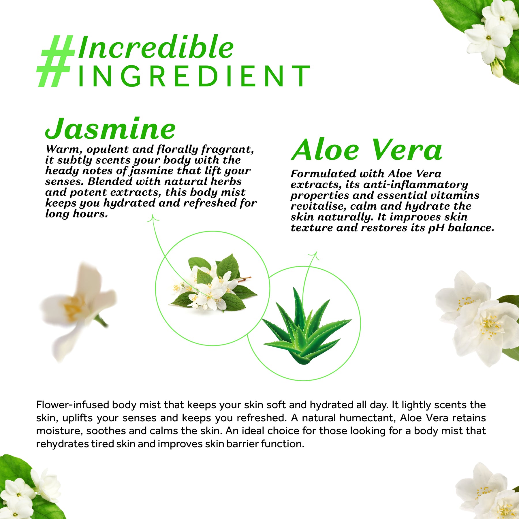 Immerse yourself in the enchanting fragrance of Atulya Arabian Jasmine Body Mist, crafted to soothe, hydrate, and uplift your mood. Infused with the delicate floral essence of jasmine, this mist provides a refreshing burst of hydration while leaving a soft, calming aroma that lasts throughout the day. Its lightweight, non-sticky formula makes it perfect for daily use, whether after a shower, before bed, or during the day for a quick refresh. Known for its mood-soothing properties, jasmine helps relax the senses, reduce stress, and enhance confidence. Suitable for all skin types, this mist is free from parabens and harsh chemicals, ensuring safe and gentle use every day. With its subtle fragrance and hydrating effect, Atulya Arabian Jasmine Body Mist keeps your skin refreshed, nourished, and lightly scented, making it a perfect addition to your self-care and fragrance collection.