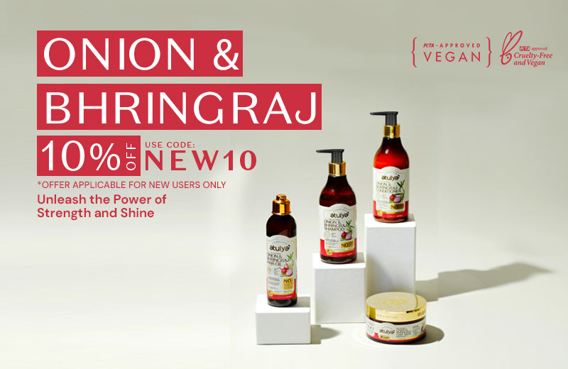 Consider your hair goals, frequency of use, and preferred product texture. For a complete regimen, combine oiling, cleansing, and conditioning with Atulya’s natural, chemical-free Onion and Bhringraj range.