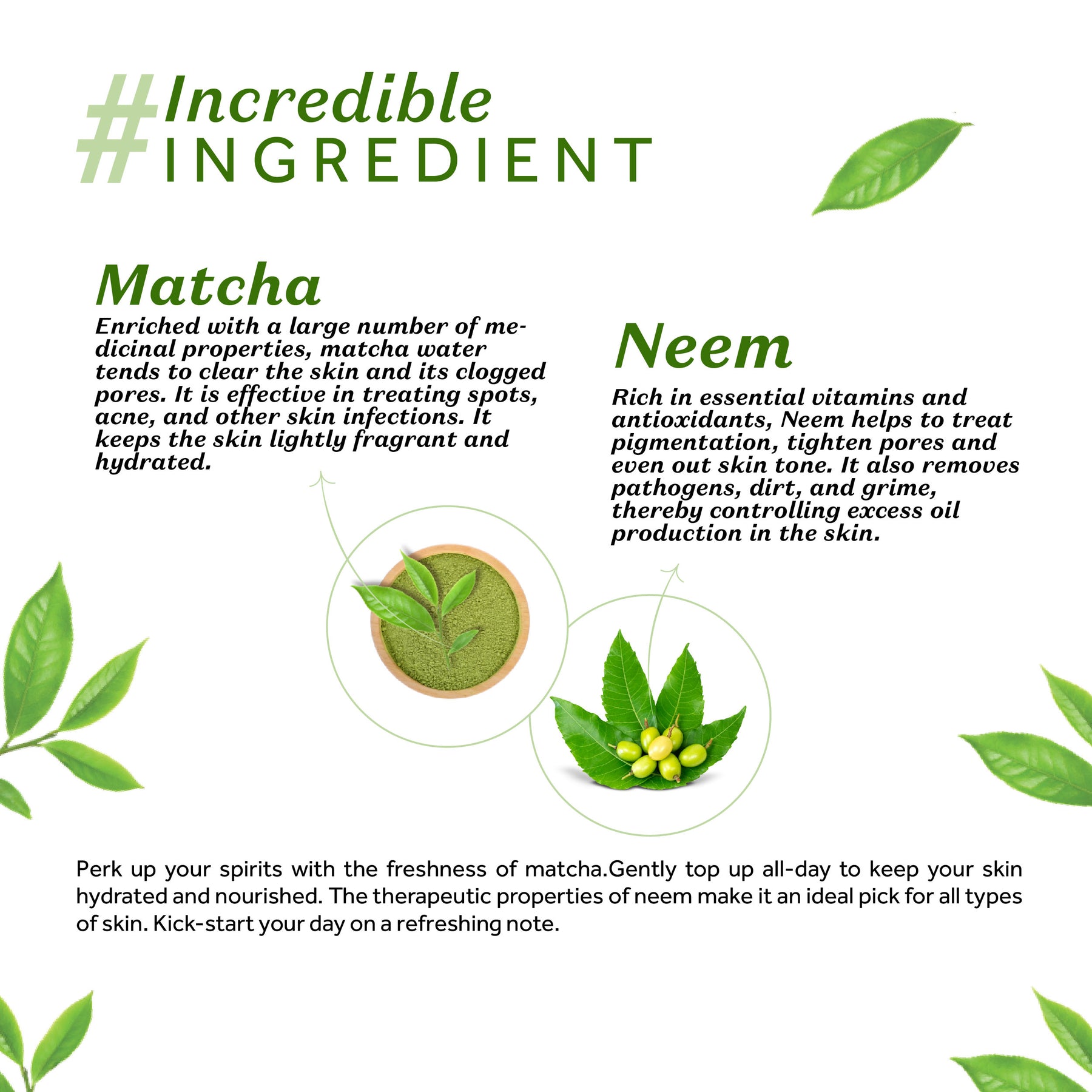 Re-energize your body and senses with the Atulya Matcha Body Mist, a refreshing spray infused with the antioxidant-rich power of Matcha Green Tea. Known for its skin-calming and rejuvenating properties, Matcha helps hydrate, refresh, and restore skin’s natural balance while leaving a soothing fragrance that lasts throughout the day. Its light, non-greasy formula instantly uplifts tired skin and provides a cooling effect, making it perfect for hot days or mid-day refreshment. This revitalizing body mist not only hydrates but also helps neutralize skin stress caused by environmental factors, keeping your skin refreshed and glowing. Suitable for all skin types, it can be used after a shower, post-workout, or anytime you need a burst of freshness. Free from harsh chemicals and parabens, this daily-use mist offers a clean, natural way to refresh your mood. Atulya Matcha Body Mist brings serenity and energy with every spritz.